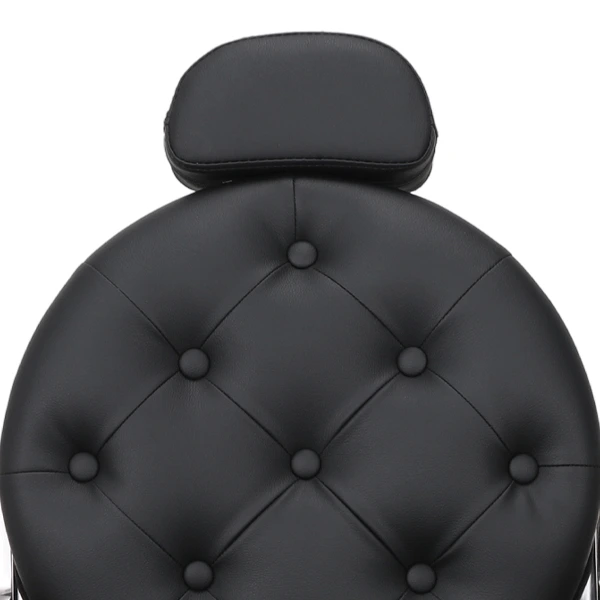 Deeply padded, diamond-tufted backrest with precision button detailing for premium support and classic barbershop style. Upholstered in smooth, durable professional vinyl (2 Year Warranty), it delivers cushioned comfort, structured posture support, and a refined, high-end finish built for all-day use.