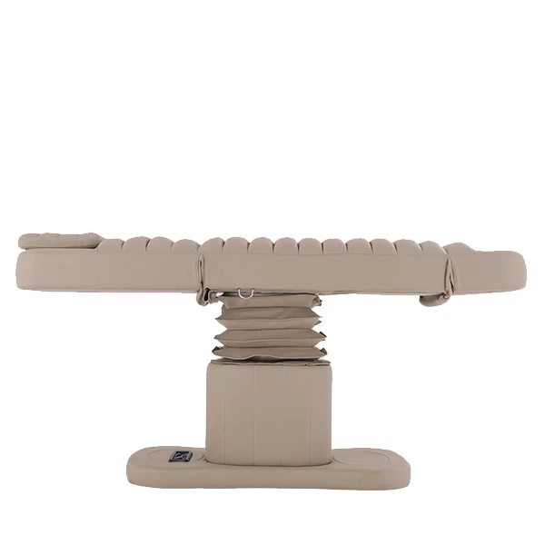 Upholstered in anti-microbial medical-grade vinyl and layered with luxurious memory foam, the bed ensures both hygiene and superior client comfort. It features a built-in face hole and a wide, ergonomically shaped head pillow to support extended treatments in prone or reclined positions.